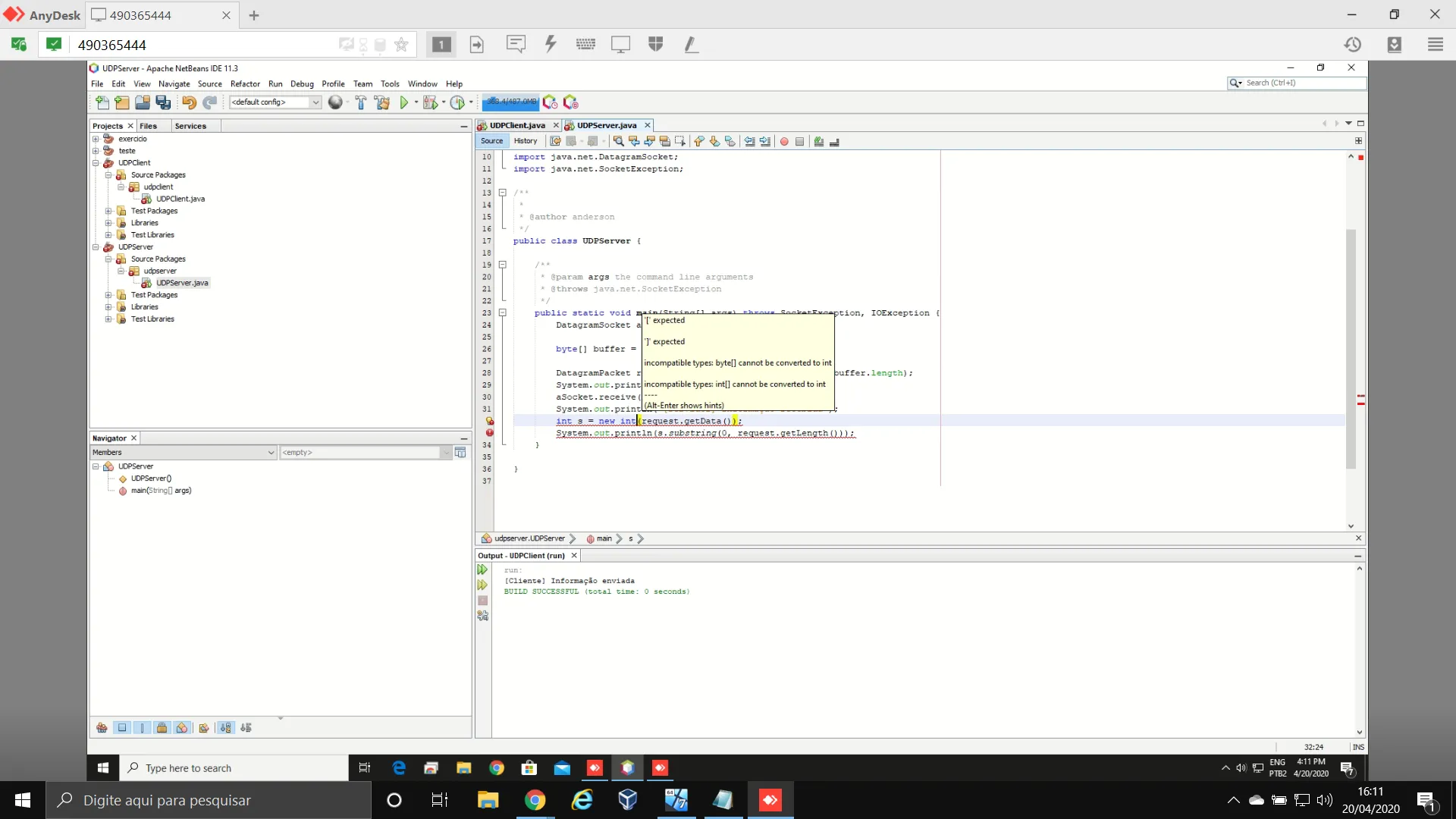 DatagramPacket request = new DatagramPacket(m, mensagem.length(), aHost, serverPort);