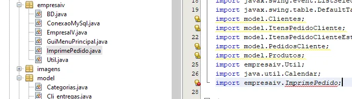 Criei uma classe ImprimePedido mas ela não pode ser importada, será que é algum erro na classe ou o problema é no NetBeans? Veja a classe abaixo: