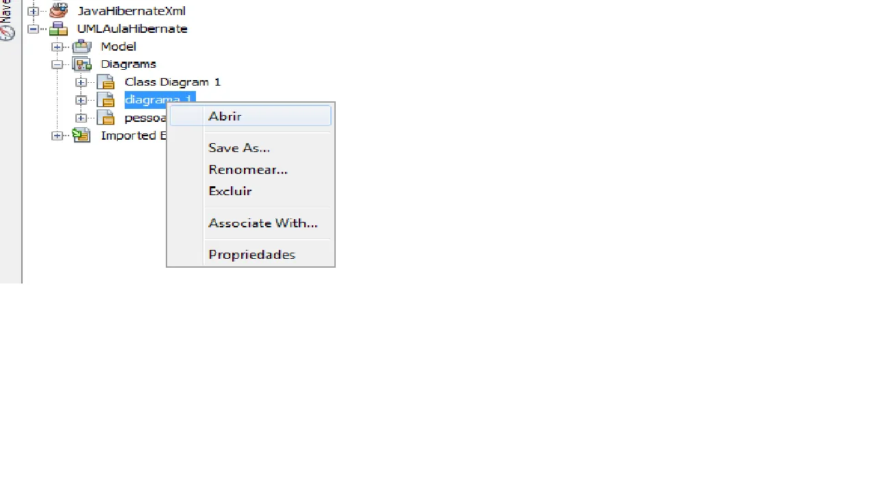 mais agora ele não abrir o diagrama.clico com o botão direito no diagra seleciono abri mais não abri