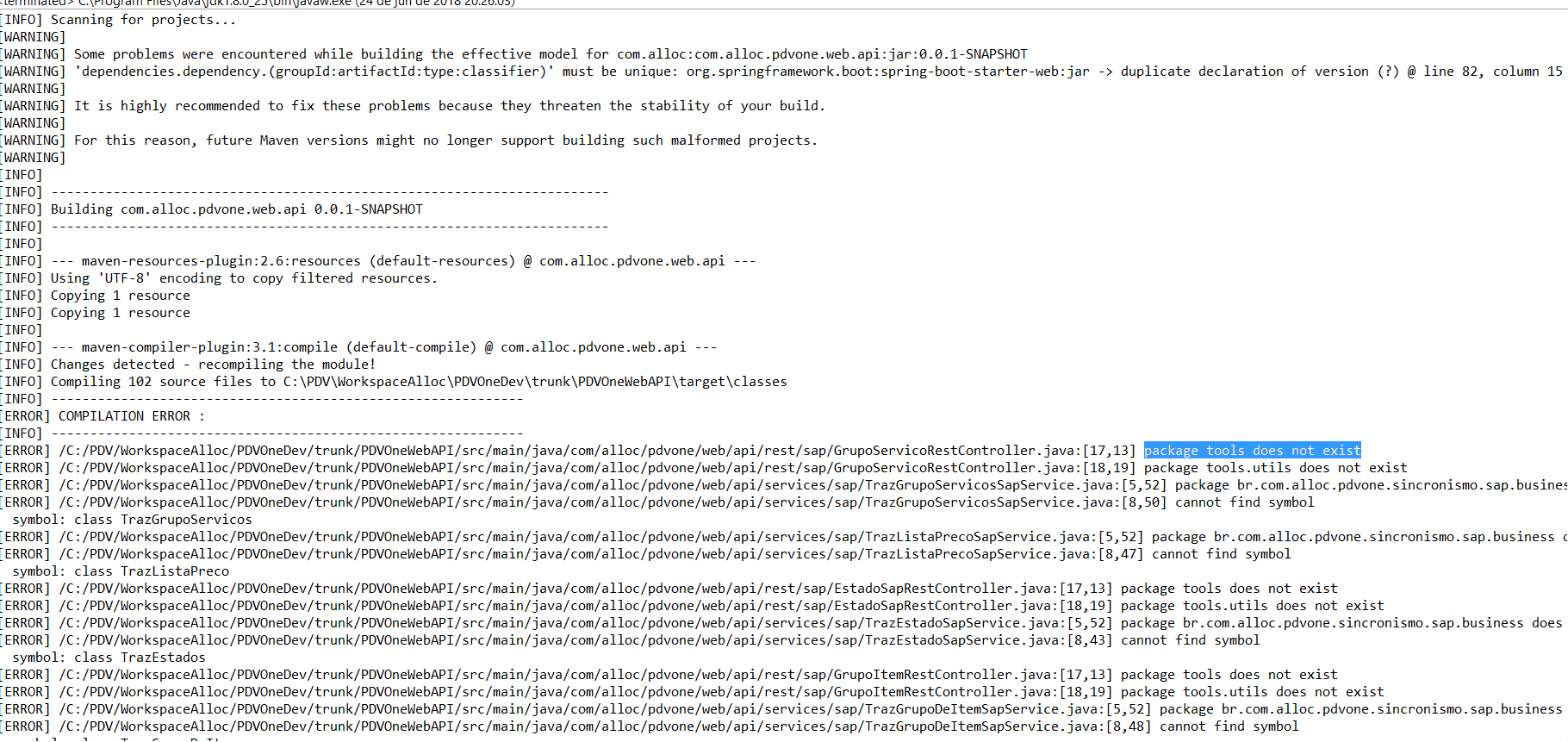 [WARNING] Some problems were encountered while building the effective model for com.alloc:com.alloc.pdvone.web.api:jar:0.0.1-SNAPSHOT