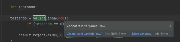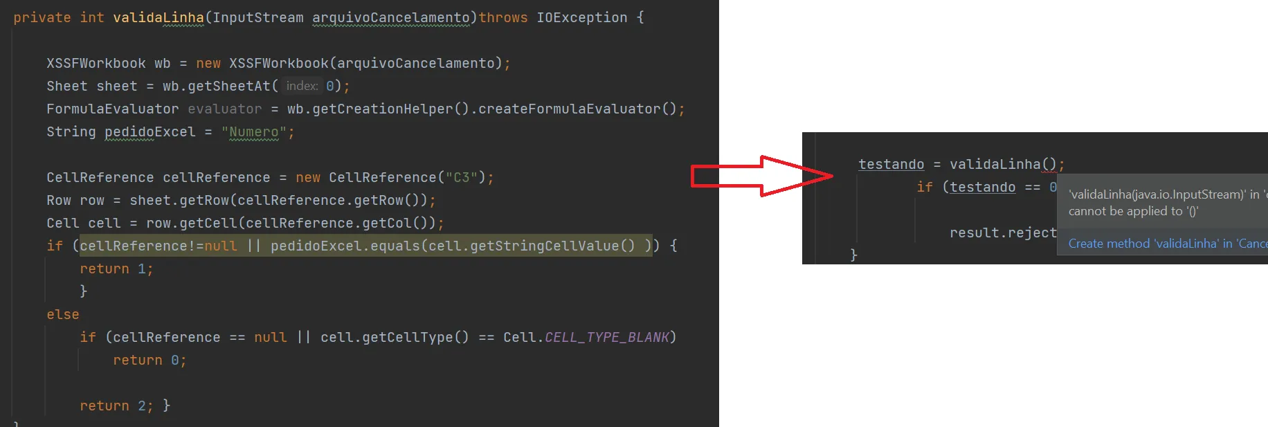 Só que agora surgiu outro problema, nao consigo chamar esse método criado, na parte que faz a validação:
