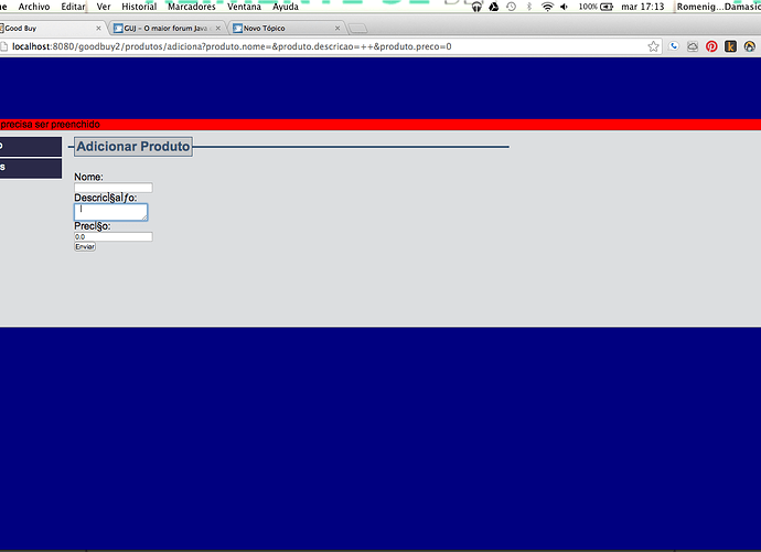 [quote]Abaixo envio a imagem da validação e outra coisa porque ñ me sai bem o nome descrição e preço no navegador, me sai assim: DescriçaÌ?o:, Preço: