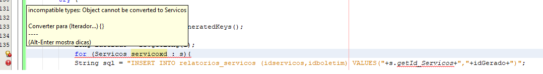 Eu tentei com for each, em outra classe e não funcionou, mas na mesma classe vsai, o problema está no Serviços servicosxd