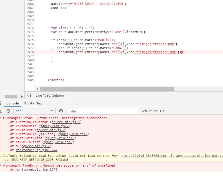 O outro erro Syntax error, unrecognized expression, deve ser algo errado em algum regex utilizado.