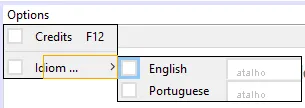 Imagem do meu menu onde “English” e “Portuguese” são radios: