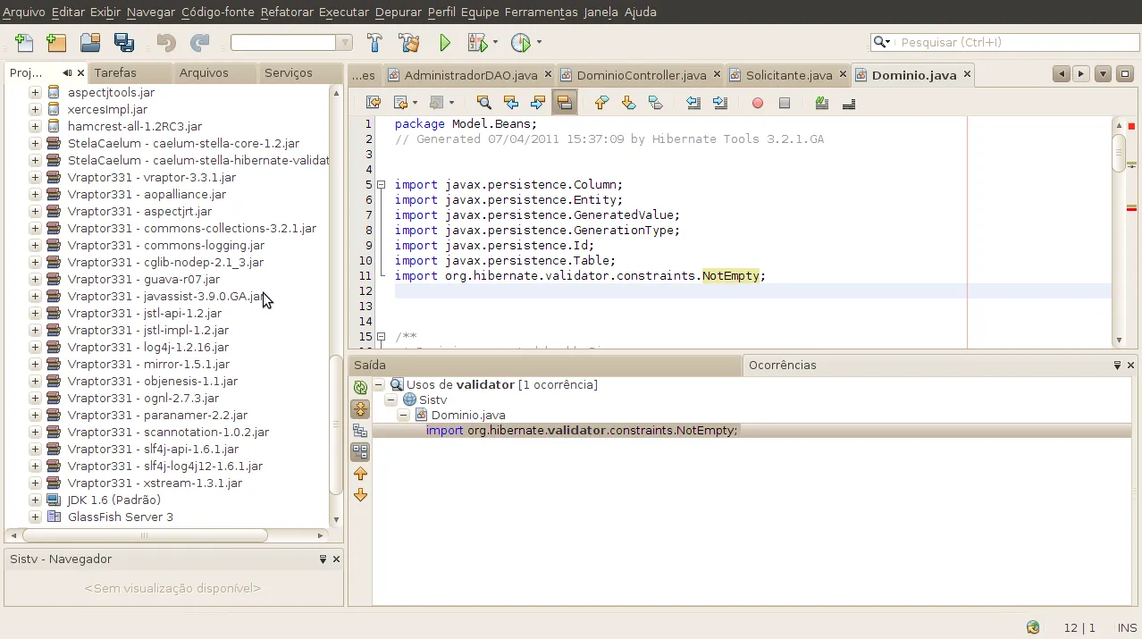 “Bean-validator.jar” que tem o hibernate.validator e o javax.validator , por isso eu fiquei confuso quando tirei as referências dos hibernate validator e ele continuava achando …