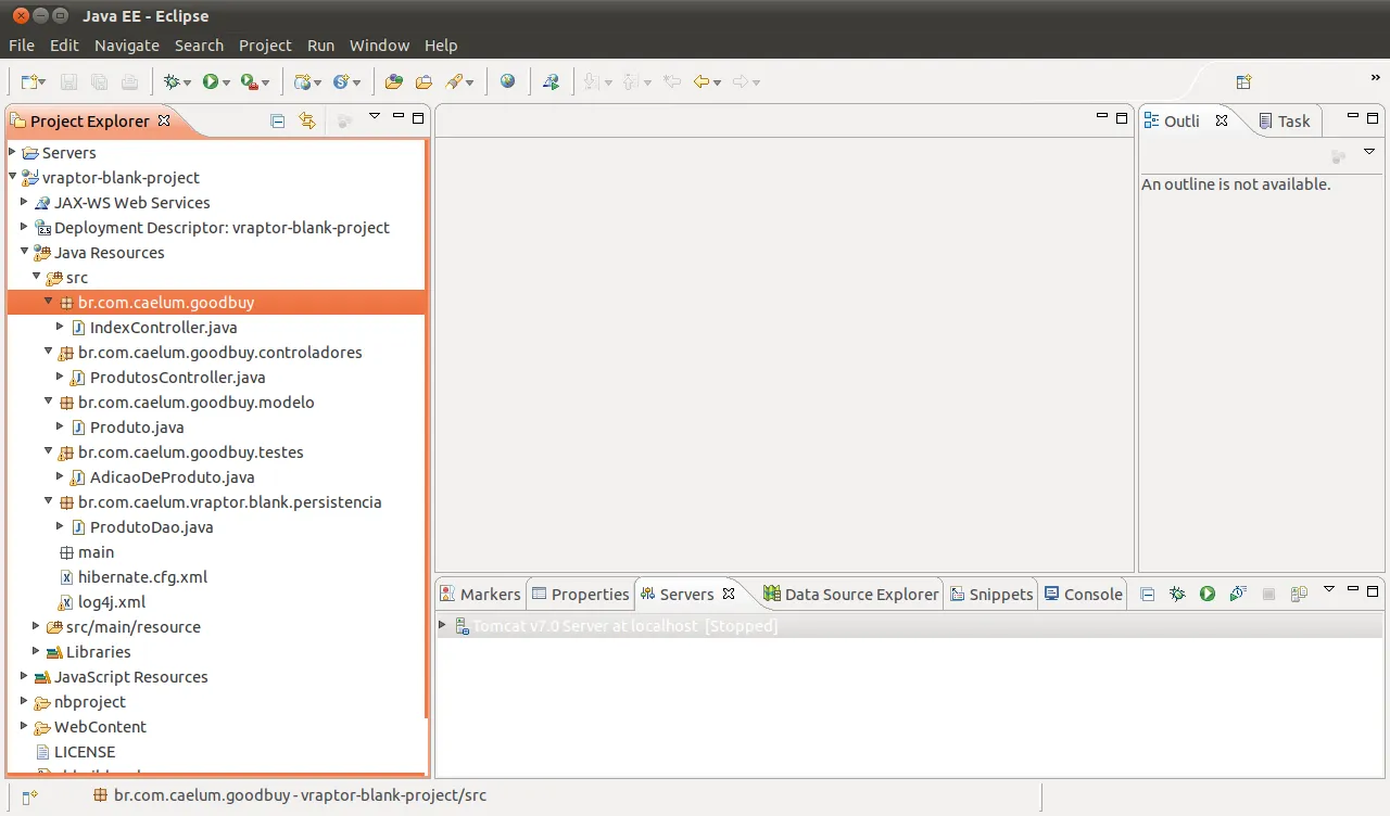 Utilizo Eclipse JEE Indigo R2; vraptor-blank-project-3.4.1 e Apache Tomcat 7.0.27 no backtrack 5