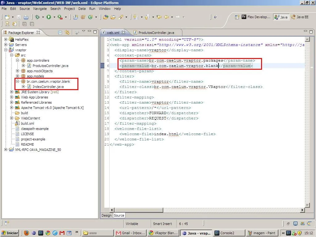 Mesmo depois de mudar o IndexController de pacote e apagar o .class da pasta build, o eclipse ia e compilava ele lá.