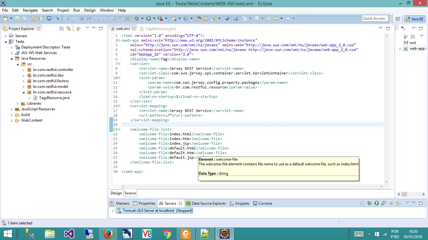 GRAVE: Servlet [Jersey REST Service] in web application [/Teste] threw load() exception