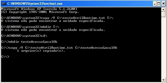 Você tem de fazer o seguinte: digamos que o relógio do Windows lhe diga que são 14:02. Então você, usando o comando “at”, agenda a execução do “cmd.exe” para 14:03 (ou um pouco mais tarde, dependendo da sua velocidade de digitação). Quando chegar a esse horário, ele irá lhe mostrar uma tela do DOS onde você vai ver que qualquer acesso a um recurso de rede vai ser recusado com “Access Denied”.