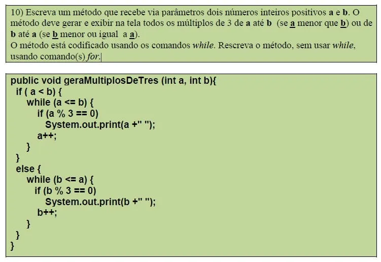 public void geraMultiplosDeTres(int a, int b){