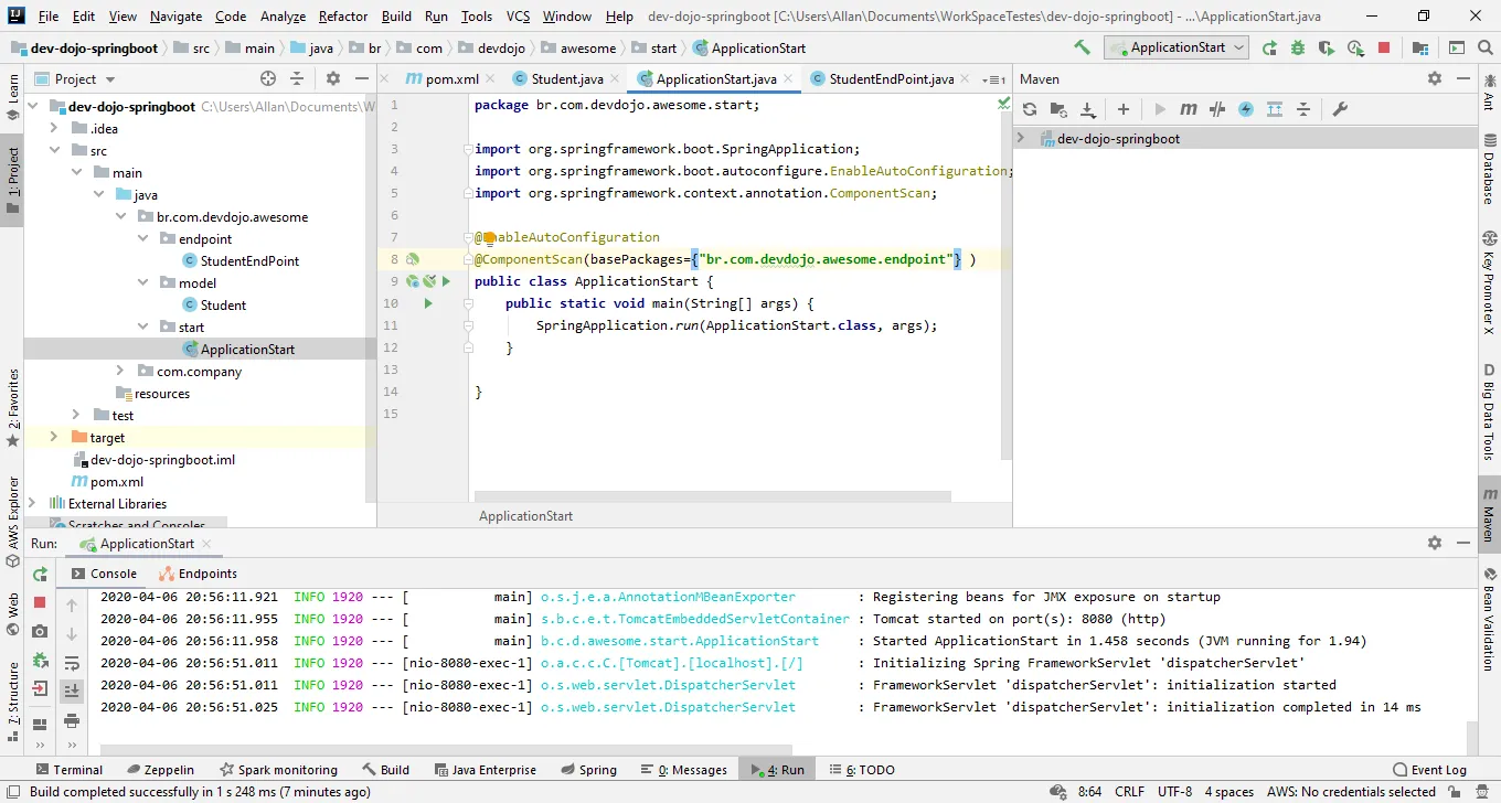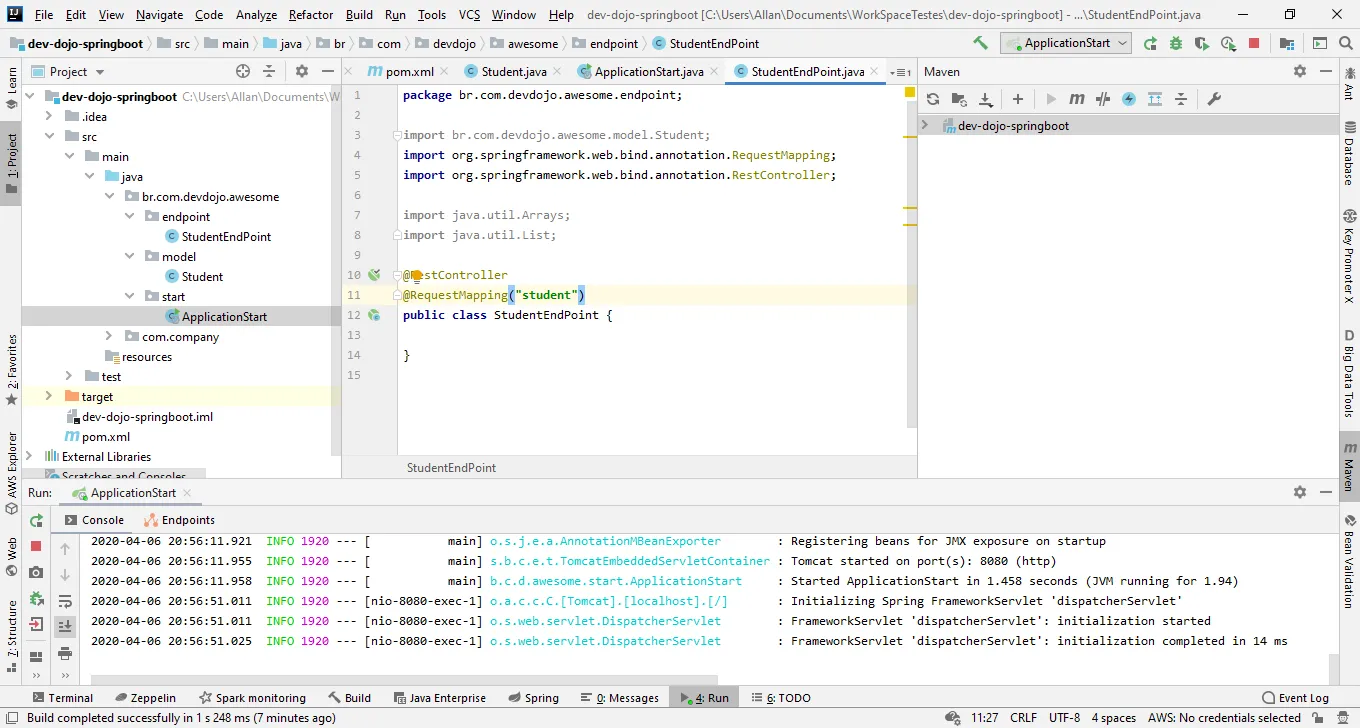 Então testei no eclipse e depois no springboot.