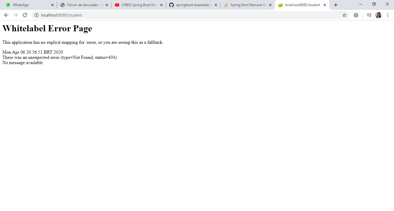 Whitelabel Error Page - erro no spring