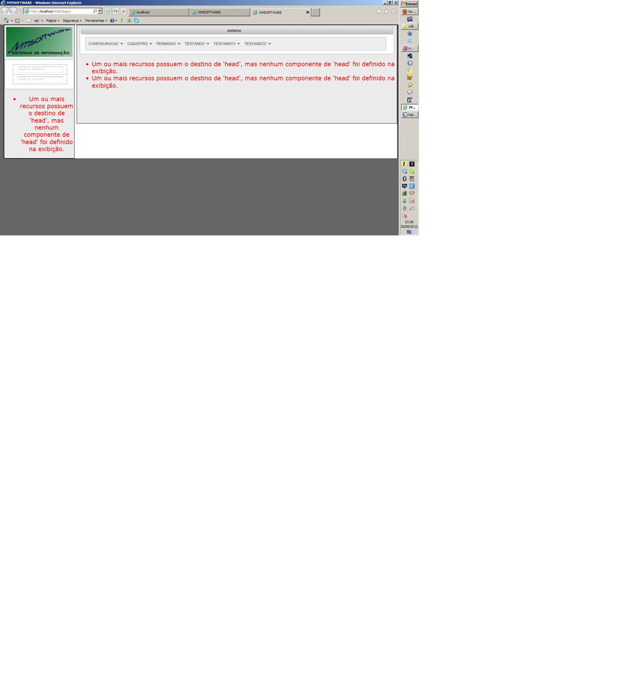 Tenho o seguinte cenário: Uma pagina index, que é um template de exibição de duas divisões: a do lado esquerdo carrega o logo da empresa e alguns dados do usuário; a do lado direito é a principal e carrega o menu e a aplicação propriamente dita. Se coloco esta pagina como pagina inicial do projeto, ela é aberta normalmente e carrega todos os conteúdos e componestes.