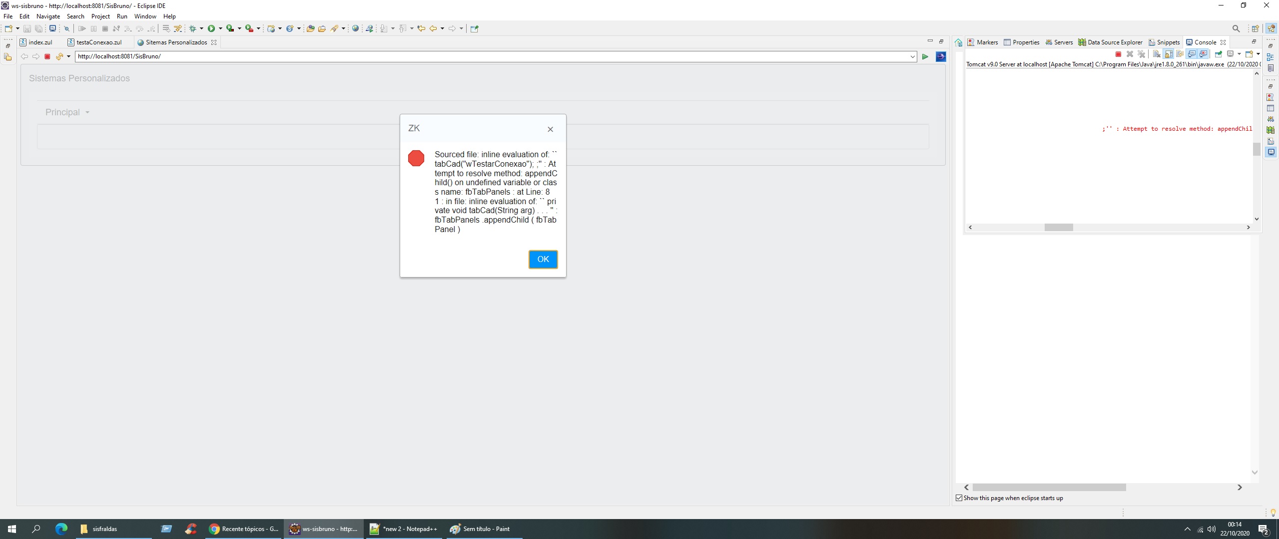 Estou fazendo uma tela como teste com zk framework,cada vez que eu clicar em um ícone do menu, ele abre em uma aba no index, caso já estiver aberto a referida aba fica normal, caso não, abre a aba da referida pagina, só que está dando um erro, e não consigo identifica-lo qual, levando em consideração que sou novato em programação java, estou estudando pelo site do zkoss, e alguns exemplos que possuo em mãos.Alguém poderia me orientar sobre???